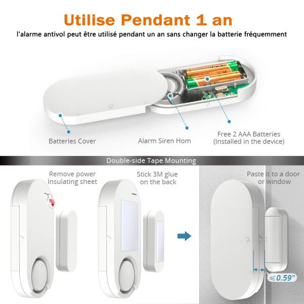 5. [DO NOT WORRY TO DO NOT WORK]: The anti-theft alarm can be used for one year without changing the battery frequently. When the battery voltage (including 2 AAA batteries) is below 2.1V, a beep sounds. Do not worry about not working.